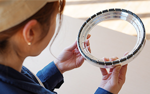グラインディングホイール(研削用の砥石)の仕上げ工程を担っています。ホイールの「刃」の部分の高さや幅を調整する仕事で、加工装置を用いてホイールの刃を丁寧に削って寸法を整えます。また、必要な資格を取得し、装置のメンテナンスも担っています。